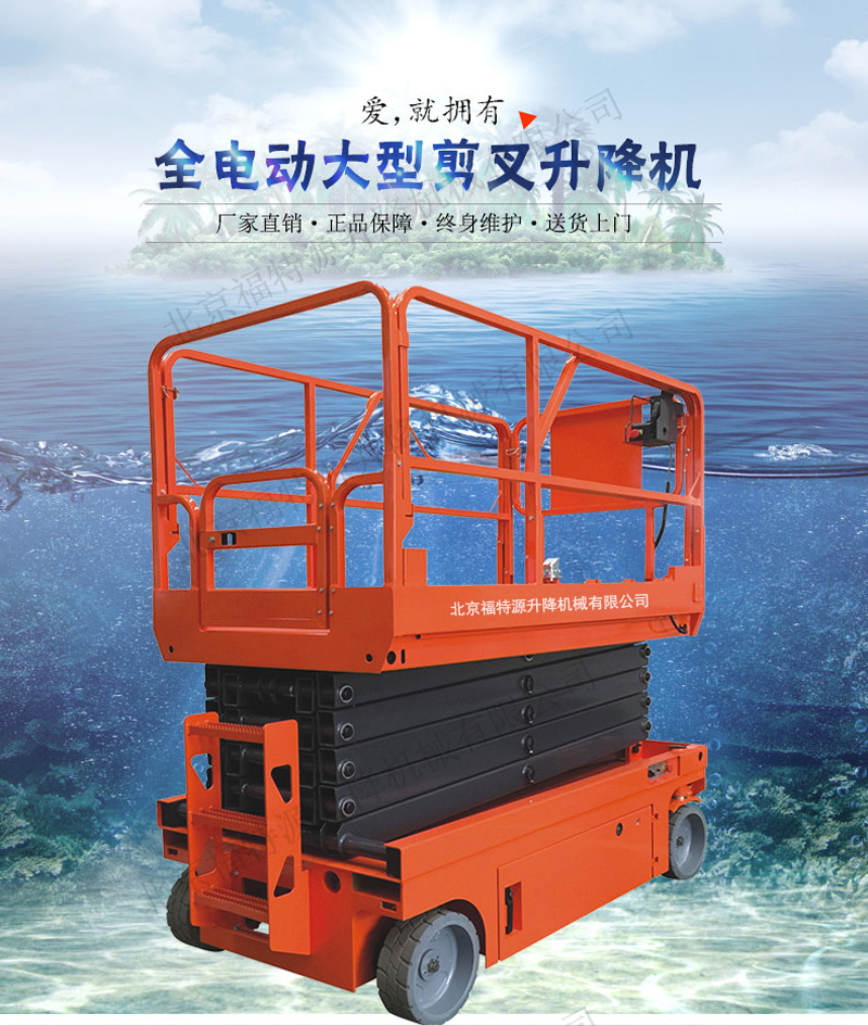 全電動(dòng)行走式升降機(jī),具有移動(dòng)靈活、升降平穩(wěn)、操作方便、載重量大等特點(diǎn)。升降動(dòng)力分為220V或380V電源,采用國外和國產(chǎn)液壓泵站。主要適用于工廠、物業(yè)單位、商店裝潢、建筑、裝飾、場館館布置、會(huì)議中心等行業(yè)。此款升降機(jī)考慮到移動(dòng)方便性、較高的穩(wěn)定性,寬大的作業(yè)平臺(tái)和較高的承載能力,使高空作業(yè)范圍更大更廣、可以多人同時(shí)作業(yè)。提高了工作效率保障了人身安全,的確是高空作業(yè)得力助手。