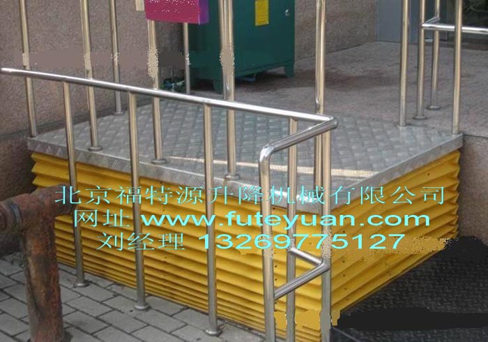 剪叉式無障礙升降機(jī):采用剪叉式升降機(jī)構(gòu),液壓驅(qū)動,升降平移安全,外部采用盲道式不銹鋼臺面和護(hù)?欄,外形小巧美觀,安裝于設(shè)備配套機(jī)坑,平臺與路面齊平,不阻礙周邊環(huán)境。剪式無障礙升降機(jī)適合安裝于帶有臺階的公交大巴,或大型旅行房車.該設(shè)備安裝于車輛踏板內(nèi)部,收藏時不影響車輛的正常使用.設(shè)備采用液壓舉升系統(tǒng),升降過程安全平穩(wěn),并配有手動裝置,在設(shè)備故障時能應(yīng)急人工操作,把設(shè)備恢復(fù)原始收藏位置.鋁合金無障礙升降機(jī)采用鋼結(jié)構(gòu)液壓驅(qū)動,采用鋁合金型材,多節(jié)垂直導(dǎo)向系統(tǒng),四點同步升降,升降平移安全,外部采用拉絲不銹鋼材料和鋁板靜電噴塑機(jī)箱/面板,外形小巧美觀,不阻礙周邊環(huán)境。