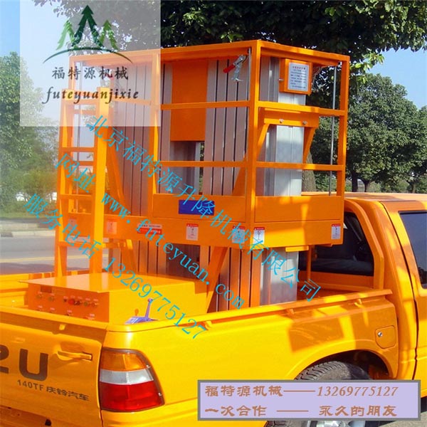 車(chē)載式鋁合金升降機(jī)利用汽車(chē)發(fā)動(dòng)機(jī)或電瓶做動(dòng)力,既可行駛又可驅(qū)動(dòng)所載的鋁合金升降機(jī),廣泛用于交通、城建、市政、油田等行業(yè)。本產(chǎn)品可根據(jù)要求設(shè)立停電情況下的應(yīng)急下降裝置、漏電保護(hù)裝置和缺相保護(hù)裝置、防止液壓管路破裂的安全防爆裝置、防止升降機(jī)超載的安全裝置。