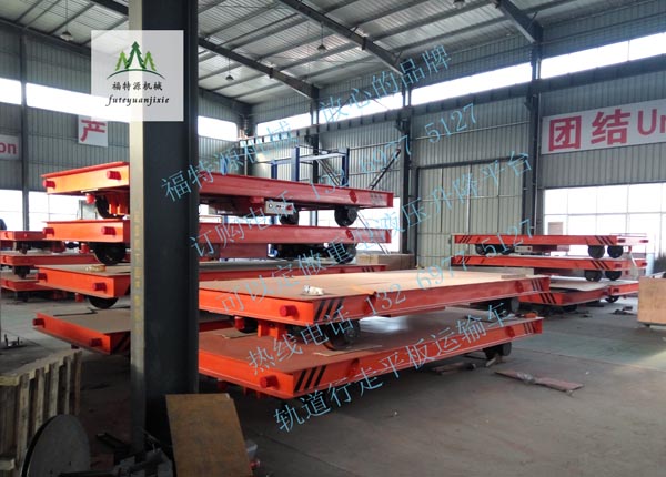 1、平板車是一種電動有軌廠內運輸車輛。又稱電動平車、臺車、過跨車。它具有結構簡單、使用方便、容易維護、承載能力大、污染少等優點。廣泛用于機器制造和冶金工廠,作為車間內部配合吊車運輸重物過跨之用。KP 系列電動平車高度低,臺面加強,改型容易,維修方便。此系列平車可改裝為電瓶直流供電方式供電,改為直流供電后不僅增加了安全,而且不怕燙,不怕砸,不妨礙交叉運輸,容易實現遙控和自動化,可以在彎道,環行道上行駛,適應增加降壓變壓器數量可不受平車運行距離的限制,給廠區運輸平面布置以很大方便,大大的增加了作業范圍。平板車是一種電動有軌廠內運輸車輛。又稱電動平車、臺車、過跨車。它具有結構簡單、使用方便、容易維護、承載能力大、污染少等優點。廣泛用于機器制造和冶金工廠,作為車間內部配合吊車運輸重物過跨之用。KP 系列電動平車高度低,臺面加強,改型容易,維修方便。