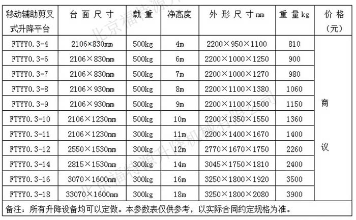 ▍移動升降機常規(guī)參數(shù) / Product Parameter