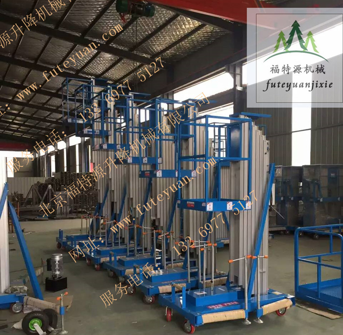 通常有單柱、雙柱、三柱、四柱、六柱等形式,根據需要可以加裝輔助行走裝置,為了放過通過低矮的通道可以定做為可斜式,還可以安裝到汽車、電瓶車等方便高空作業使用。