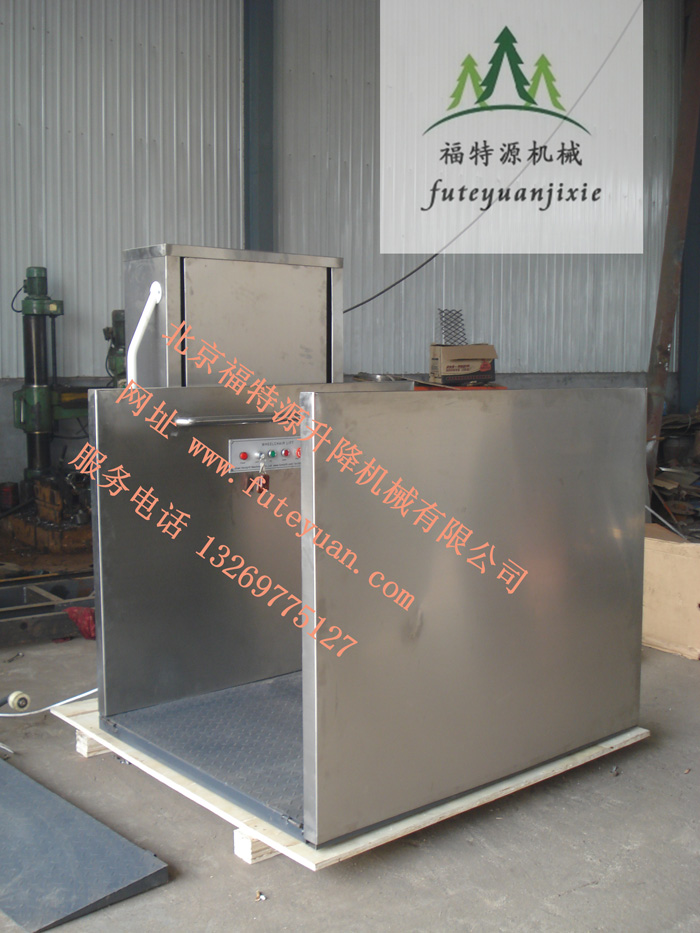 人在使用時,輪椅四個輪子可以被固定在臺板上,按動開關(guān)后就可以控制升降平臺進入地下通道,安全方便。