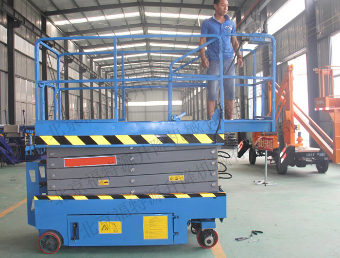 全電動(dòng)行走式升降機(jī),具有移動(dòng)靈活、升降平穩(wěn)、操作方便、載重量大等特點(diǎn)。升降動(dòng)力分為220V或380V電源,采用國外和國產(chǎn)液壓泵站。主要適用于工廠、物業(yè)單位、商店裝潢、建筑、裝飾、場(chǎng)館館布置、會(huì)議中心等行業(yè)。此款升降機(jī)考慮到移動(dòng)方便性、較高的穩(wěn)定性,寬大的作業(yè)平臺(tái)和較高的承載能力,使高空作業(yè)范圍更大更廣、可以多人同時(shí)作業(yè)。提高了工作效率保障了人身安全,的確是高空作業(yè)得力助手。